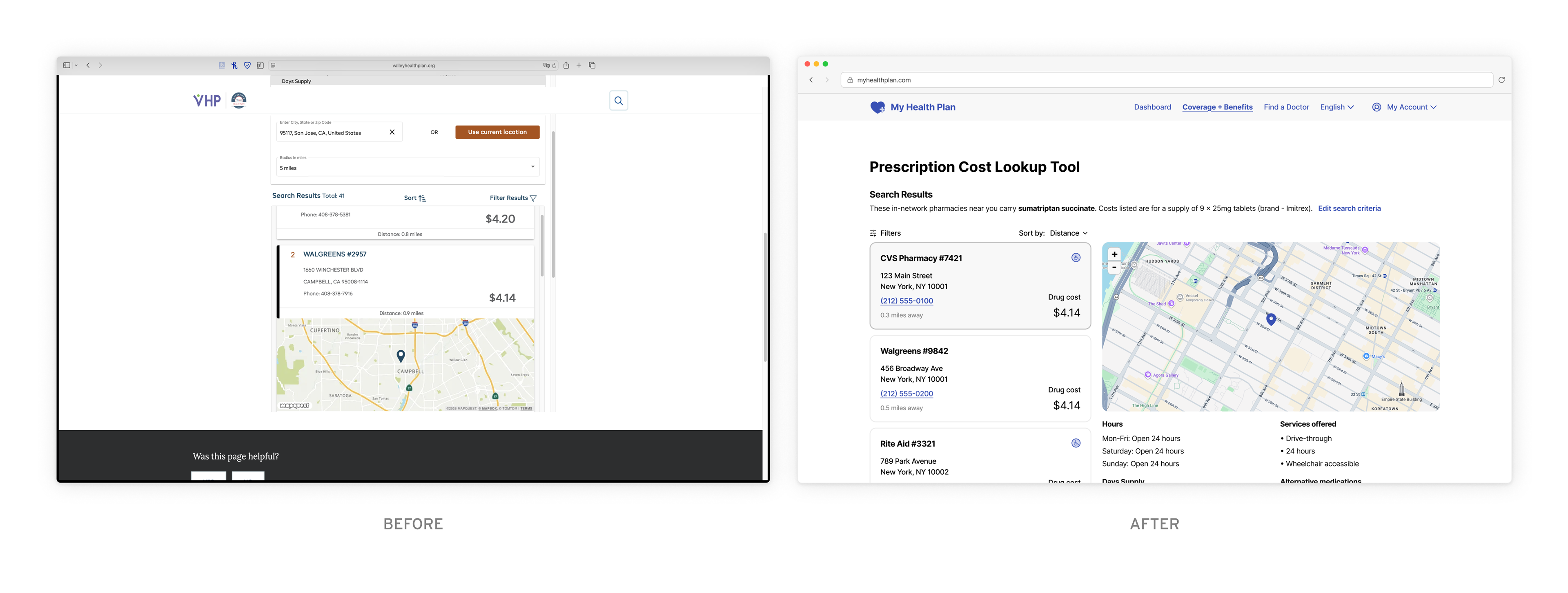 I also added a clearer inline alert when the user selects a non-covered drug, suggesting a covered alternative, in contrast to the original tool, which alerted the user without a clear explanation or advice.
