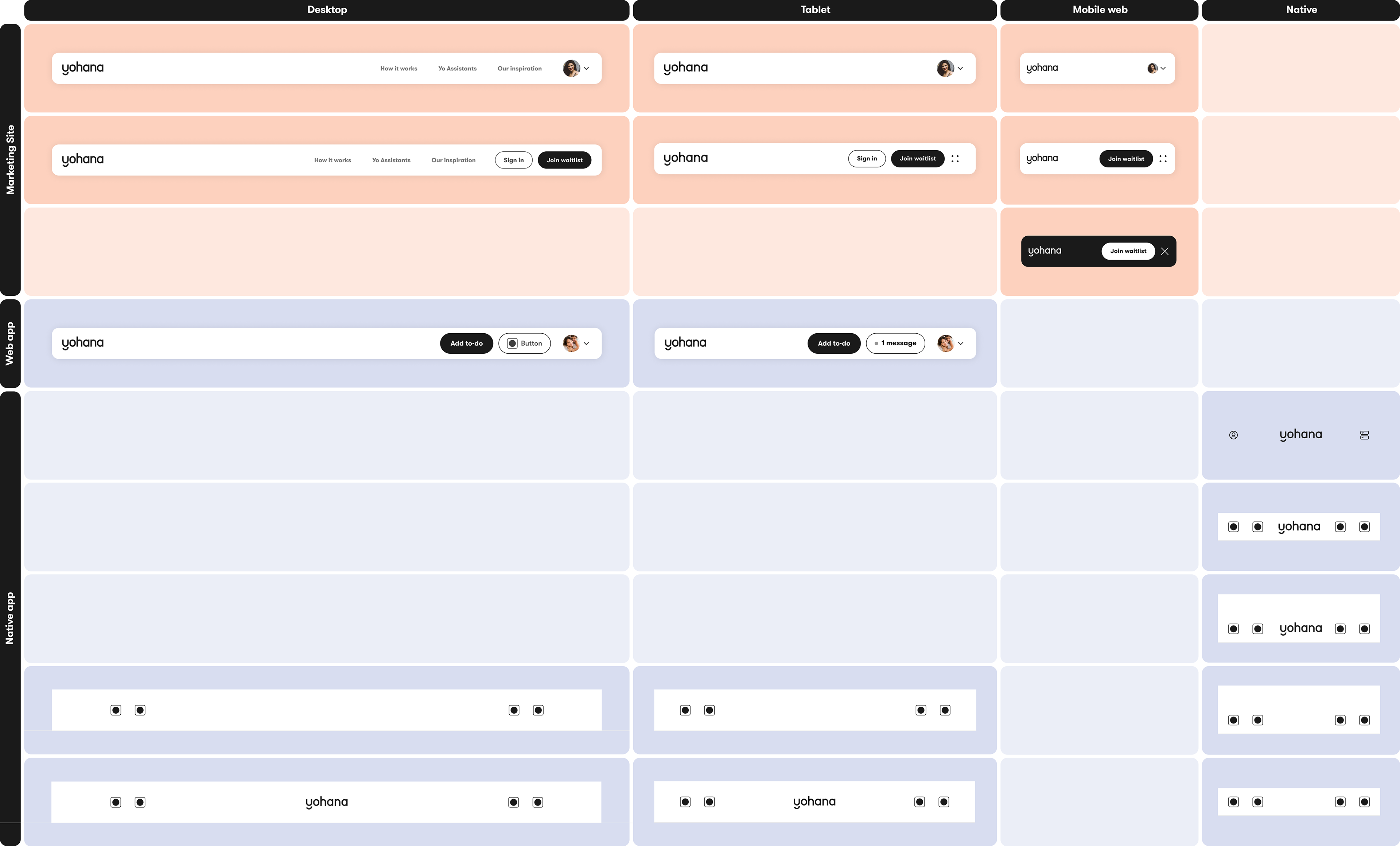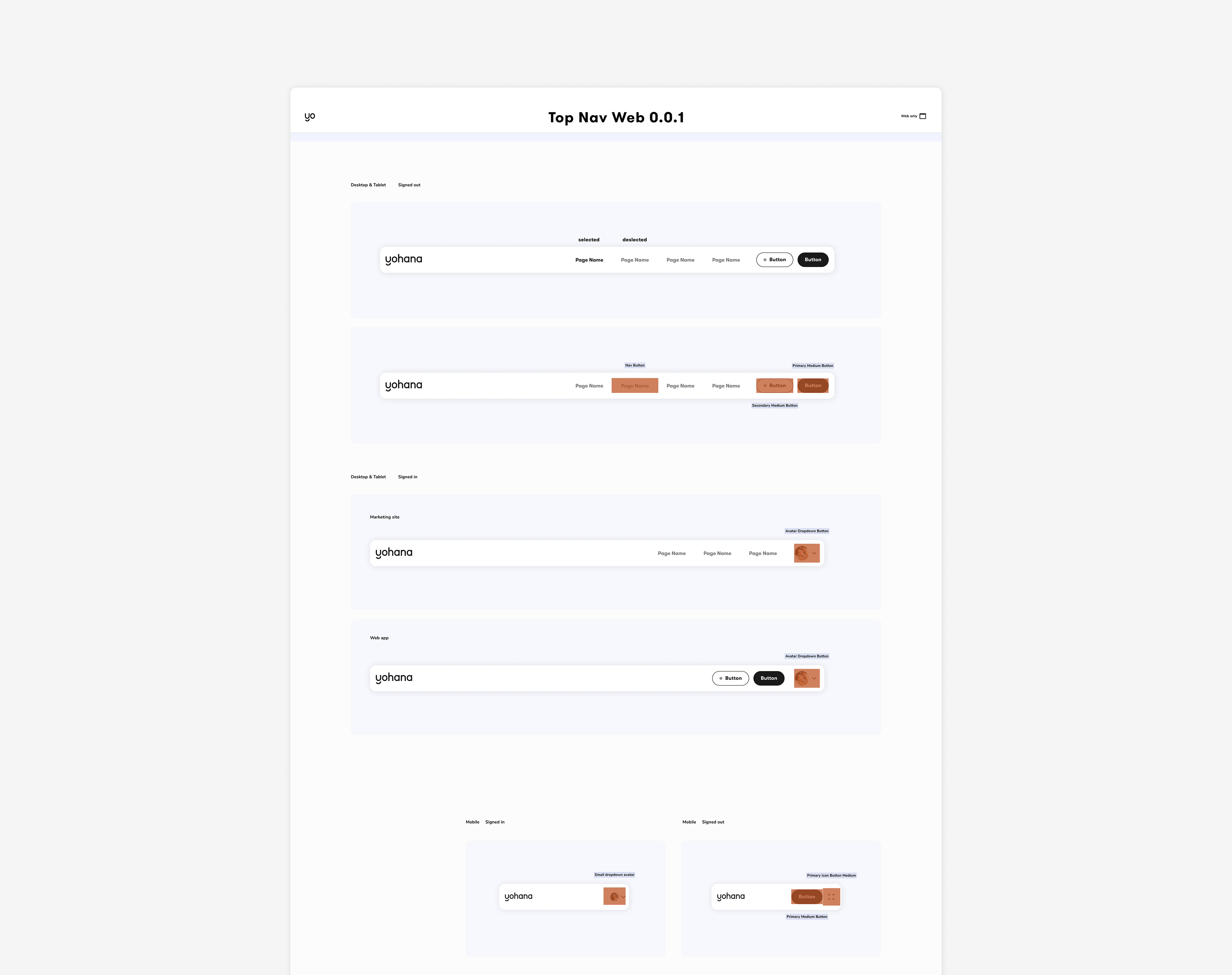 I conducted an audit of all the existing separate components for top navigation bars across marketing and product