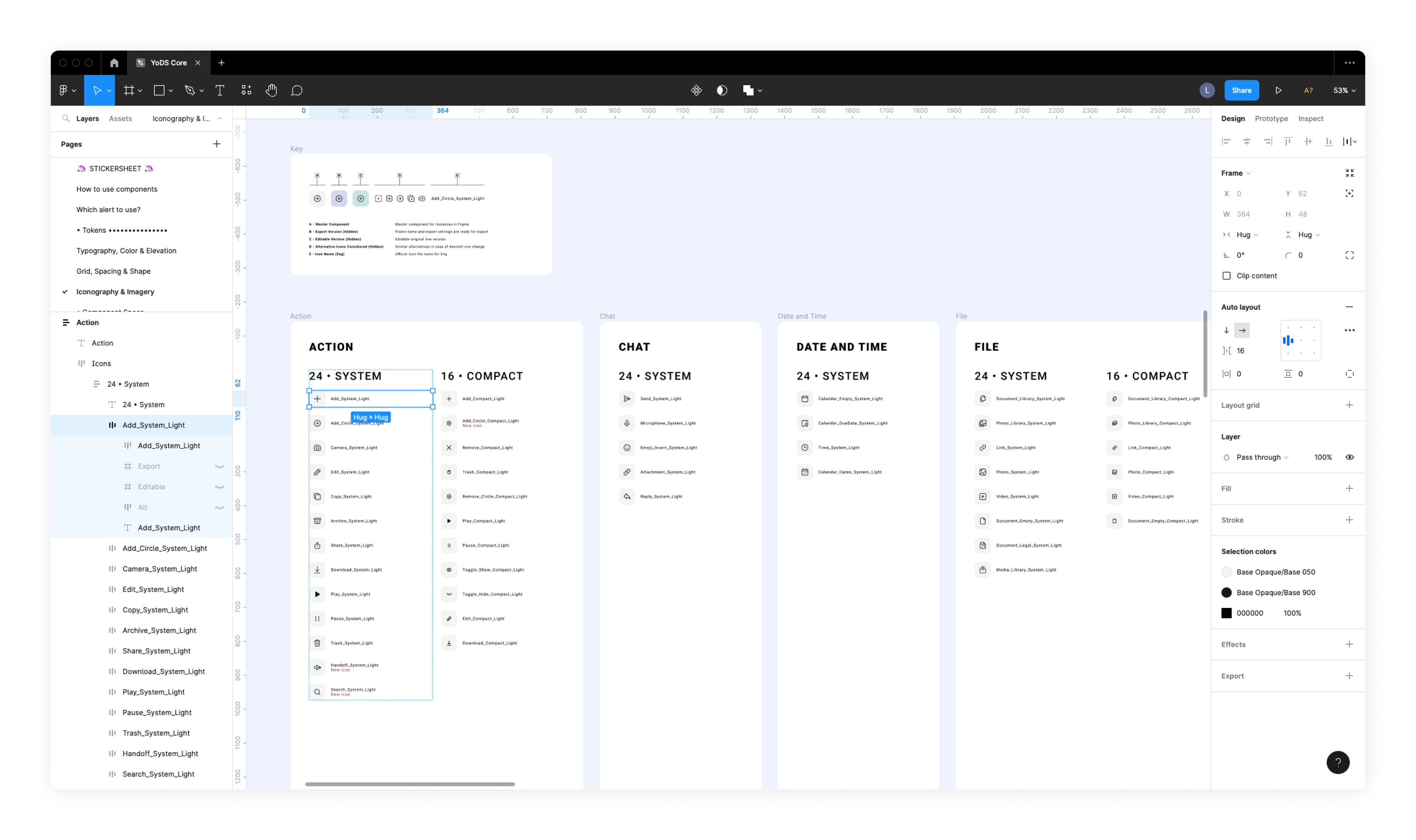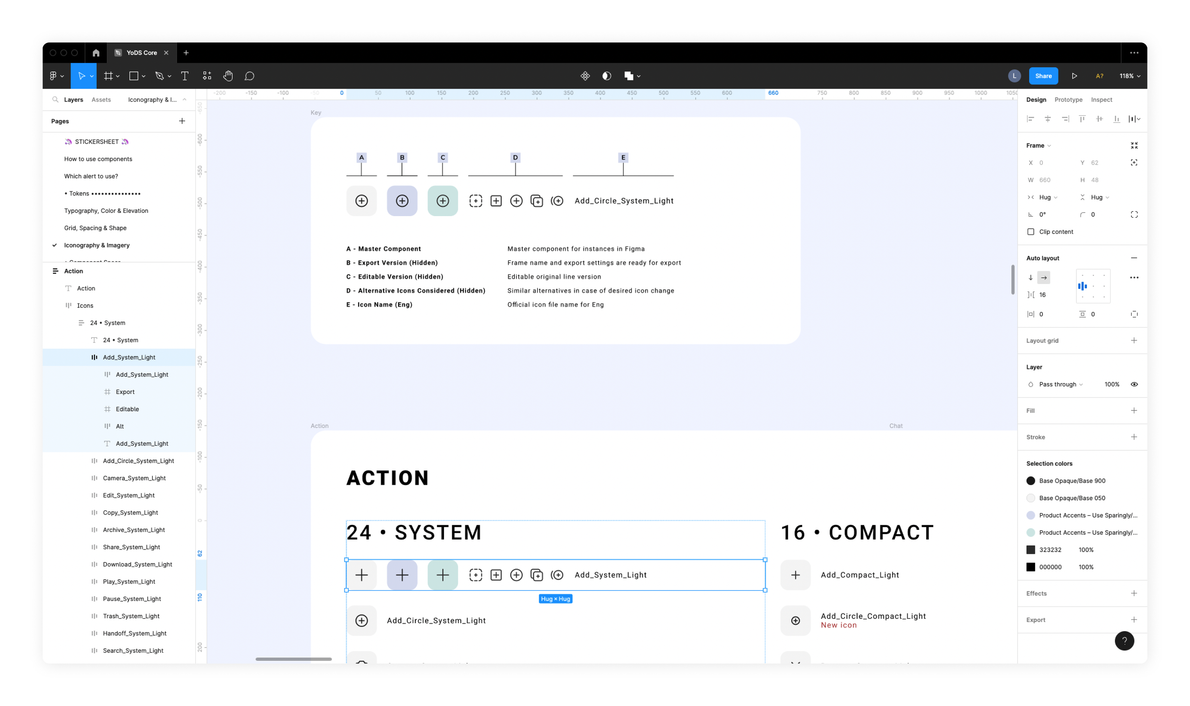I took advantage of Figma's auto layout feature to organize all of the icons into rows and categories